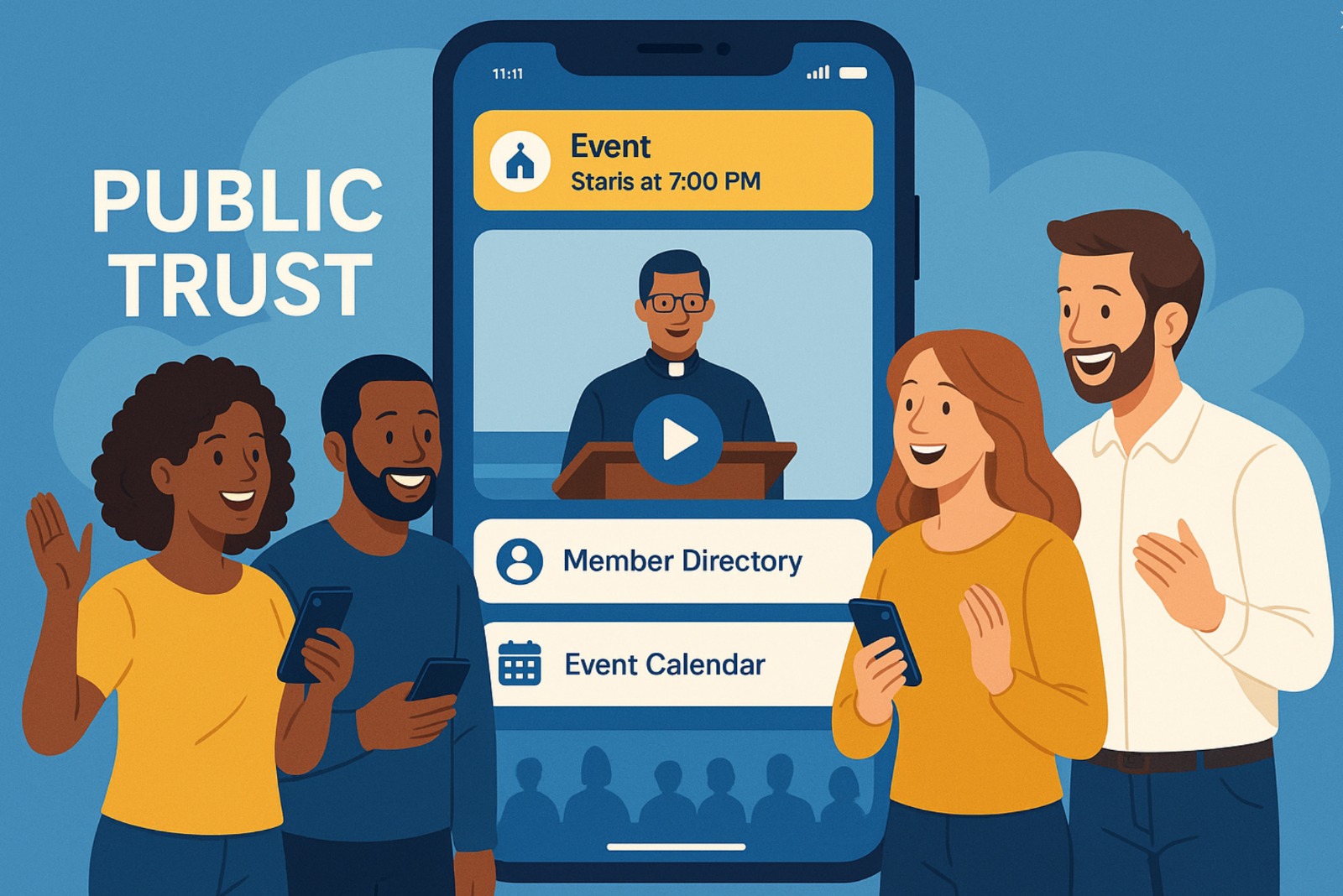 iOS and Android devices stay connected. Secure Member Portal shares private announcements, prayer requests, and ministry resources only with your registered congregation members.